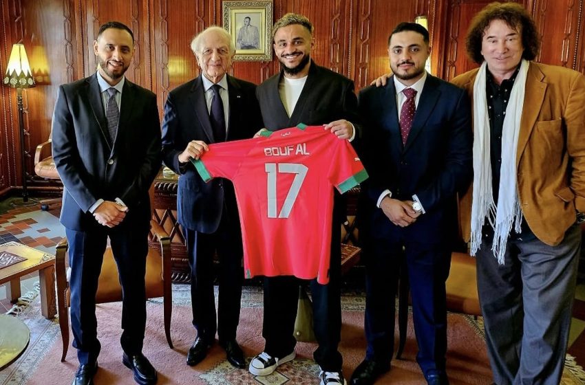 إستضاف مستشار صاحب الجلالة الملك محمد السادس، أندري أزولاي، لاعب المنتخب المغربي سفيان بوفال بمقر الديوان الملكي بالعاصمة الرباط.