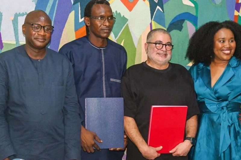 وتم توقيع إتفاقية هبة هذا العمل الفني بين مؤسسة ماحي بنبين والمعهد الأساسي لإفريقيا السوداء التابع لجامعة الشيخ أنتا ديوب في دكار.